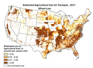 Usage data shows areas of heavy usage and exposure to paraquat.